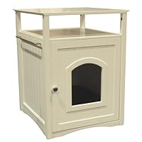 Keep those messy litter boxes out of sight and provide your cat with a safe, attractive place to sleep. The Merry Pet Cat Washroom/Night Stand Pet House is designed to look like a classic, clean white cabinet with wainscoting paneling details and stainless steel hardware that fits any indoor décor. The fiberboard litter box cover keeps all ugly messes inside. The door opens wide for easy litter box scooping (litter box not included). The Washroom also provides useful shelf space and a stainless steel towel bar for supplies.