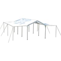 The ShelterLogic Max AP Series Canopies feature a heavy duty 1 3/8" all steel frame that is bonded with a DuPont thermoset baked on powder-coated finish which prevents chipping, peeling, rust and corrosion. The polyethylene cover is a triple layer, chemically heat bonded, enhanced weave with ripstop and is 100% waterproof. It is UV treated inside and out with added fade blockers, anti-aging, anti-fungal agents. Includes: One piece fitted full valance cover, Bungee cords, Foot plates, Temporary spike anchors, and Extension Kit.