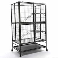 Give your pet ferrets plenty of room to stretch out and play in the very roomy Marshall Folding Mansion. Its attractive black powder-coated finish looks great in every room, and it's imaginatively designed to fold flat for quick, easy storage and movement. Includes 1 large and 2 small platforms, 3 textured ramps for easy climbing, and a textured tray that locks solidly into place and cleans up easily. Gain instant access inside through the 3 doors—1 fliptop and 2 drop-down. 4 rolling casters attach to the bottom to let you move the Mansion effortlessly around the house. Assembles in minutes with no tools needed. Measures 37 x 24.2 x 53.9 inches.