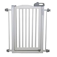 When I saw a fence similar to this fence I knew I was about to secure the right gate. No more climbing over the gate!! (her or me!!) However, in reading the reviews, I knew I did not want a wooden gate because one buyer said his dog chewed through the spokes in a few months, so I looked under metal gates and purchased this gate. Great gate, easy set up, easy to walk through. BUT THE SPOKES ARE WOOD, SO I HAD TO DUCT TAPE EACH SPOKE BECAUSE BOTH MY FEMALE COCKERS BEGAN CHEWING. Once I did that everything was fine!!