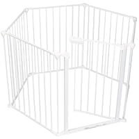 Create a large, enclosed play area to protect your baby.Arrange sections to shape a unique play area. Made of steel with anontoxic finish, the set has six 24-inch sections that adjust to anyangle and lock in place. The vertical design (to 28 inches in height)prevents climbing, and there's even a walk-through gate section. Theden is ideal for children or pets.